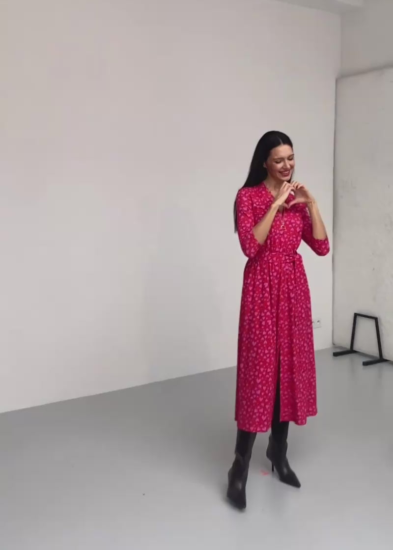 LIBERTY DRESS print Risk. follow your heart fuksja