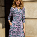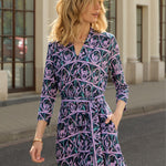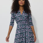 Odcinana w talii sukienka wygląda jak uosobienie klasy, ale kiedy przyjrzysz się bliżej, dostrzeżesz rozporek z przodu, który sięga nieco nad kolano. A to nie wszystko, bo regulowany krytym zamkiem dekolt w serek też może się znacznie powiększyć. Dobra do kuszenia i do karmienia. Ma kieszenie.